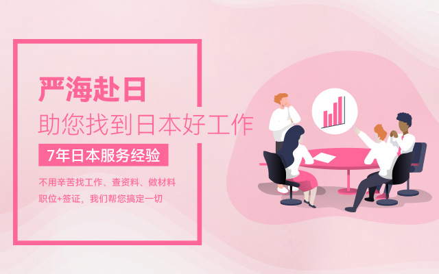 嚴(yán)海赴日(workinjapan.cn)是專業(yè)的赴日工作服務(wù)平臺,是大連嚴(yán)海人力資源有限公司旗下品牌。主要提供日本就職(工作簽)/日本留學(xué)(半工半讀),等最新工作信息和資訊,為想赴日工作的小伙伴們提供專業(yè)的、一對一的咨詢,為您職業(yè)生涯規(guī)劃、永居辦理、在日期間換職、轉(zhuǎn)換簽證等方面提供支援。